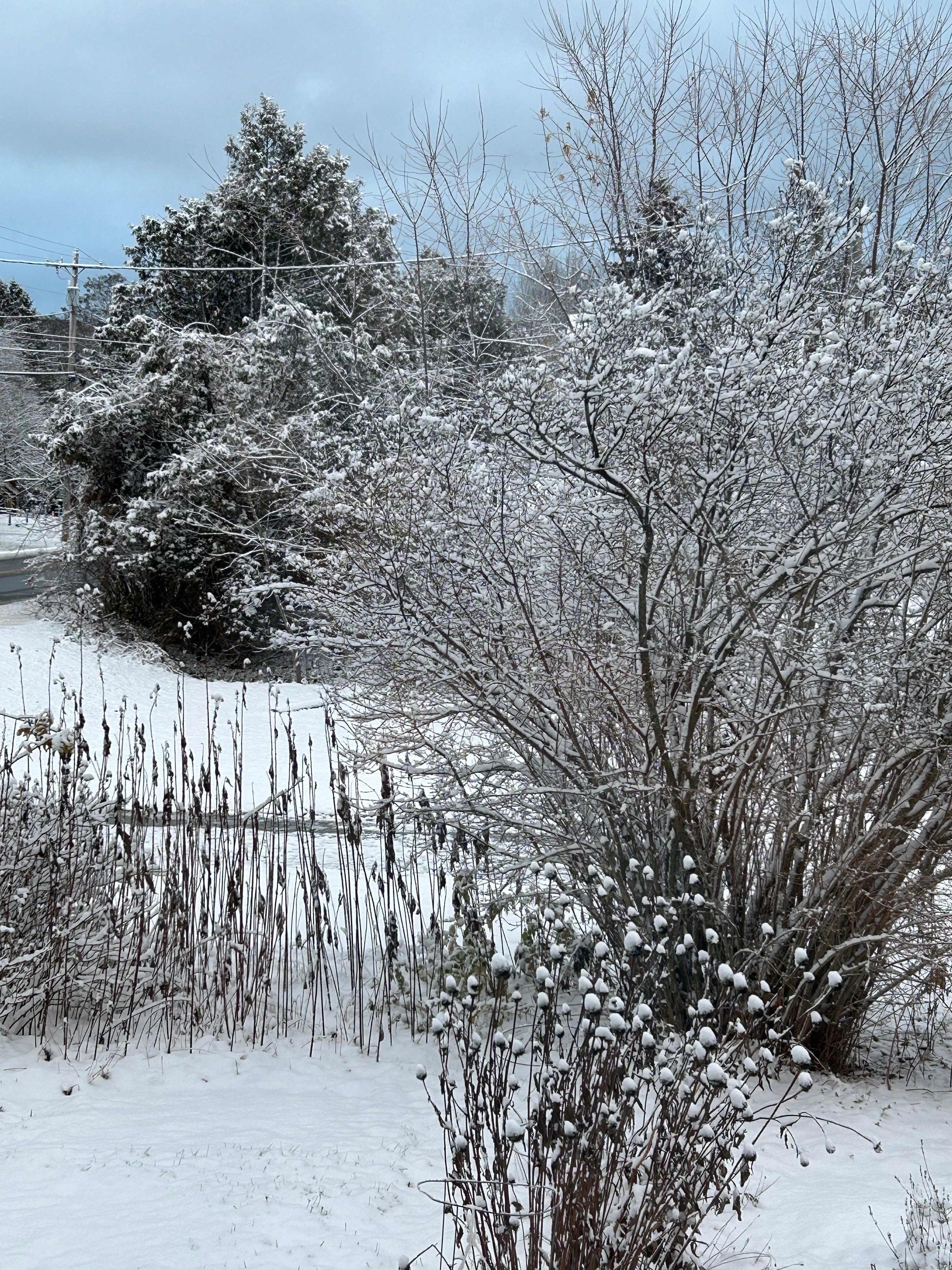 Last night was our first snow. I’ve been enjoying the dark nights since we changed the clock and now the white covering of everything outside is brining me joy.