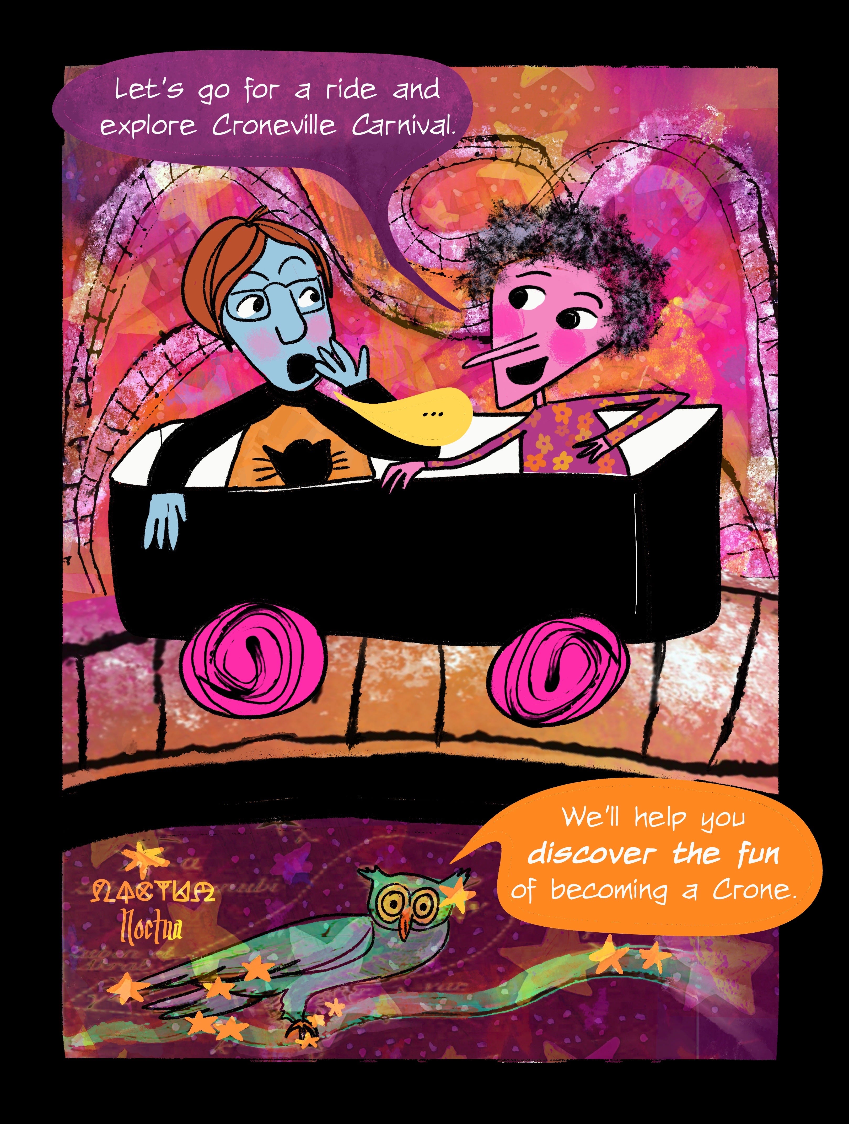 I’m taking a break from deadlines and “work” until next year, but I never stop thinking about the power of becoming a crone. And Croneville Carnival part 2 is percolating.